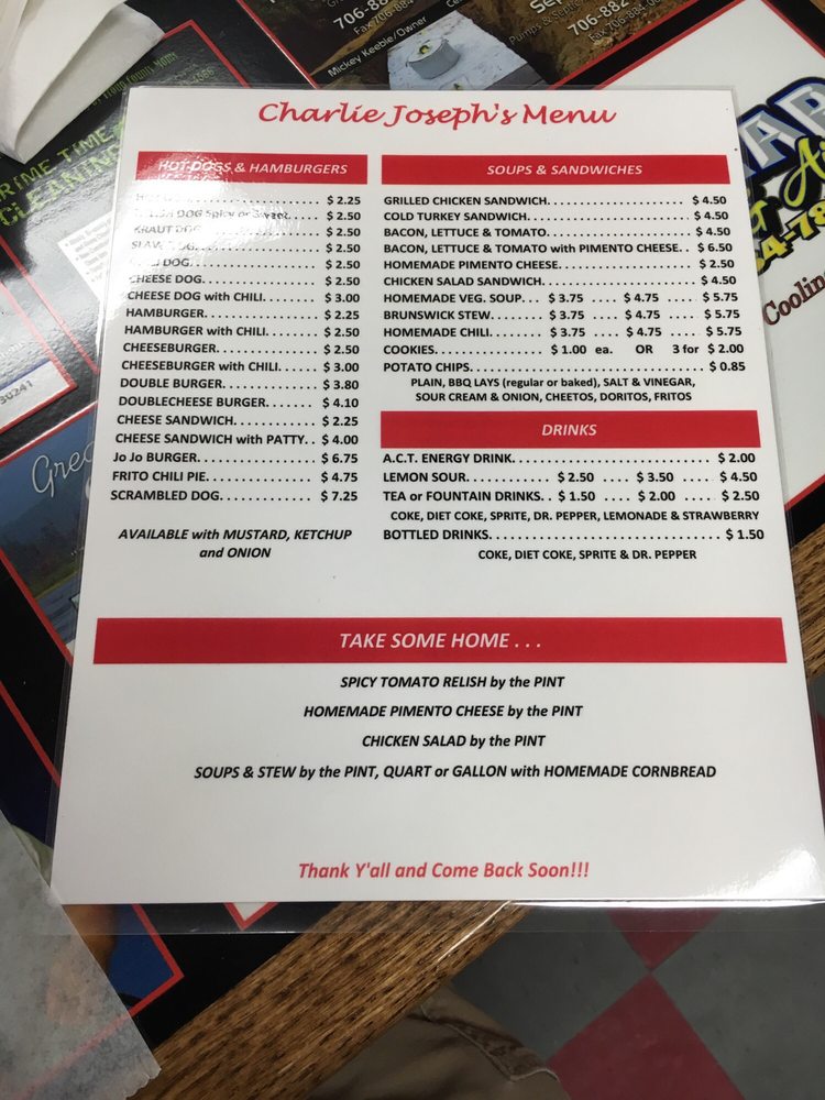 Charlie Joseph's, located in Lagrange, GA, is a cherished spot known for its traditional hot dogs and burgers. This family-owned restaurant offers a range of utilities including delivery, takeout, reservations, and catering services. The cozy atmosphere and friendly service have left customers raving about their experience. Notable mentions include the mouthwatering hot dogs that keep patrons coming back for more. The longstanding history of Charlie Joseph's adds a nostalgic charm to the dining experience, making it a must-visit for anyone in the area. Whether you're in the mood for a classic hot dog or a tasty burger, this restaurant provides a taste of Southern hospitality that you won't soon forget. Stop by for a quick lunch and enjoy the consistently good food served with a smile. Experience the best hot dogs in the southeast and a side of history at Charlie Joseph's.